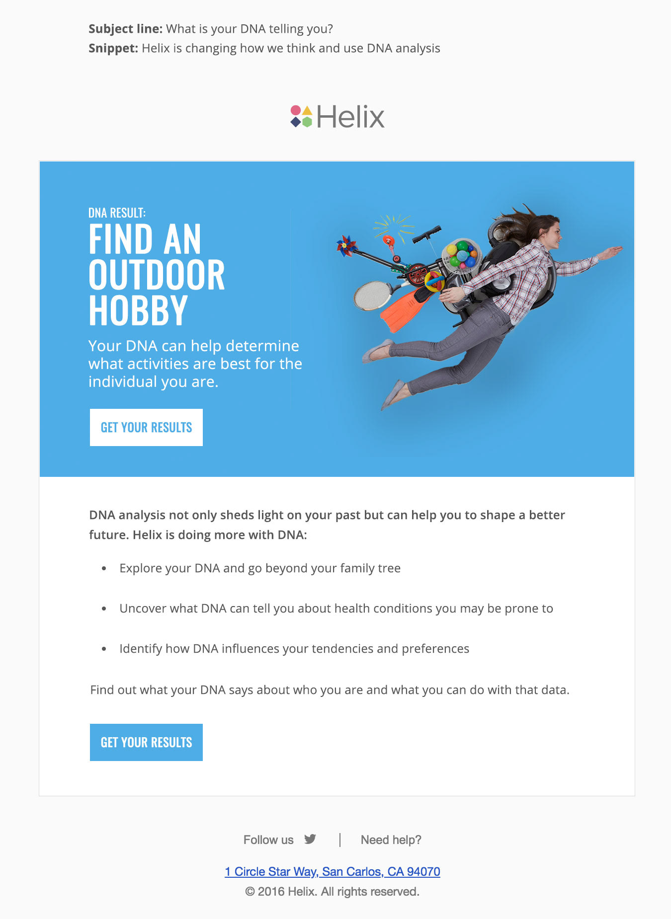 In this Helix campaign I helped to brainstorm creative ways genetics affect our everyday lives and how DNA analysis can help to lead healthier, more fulfilling lifestyles.